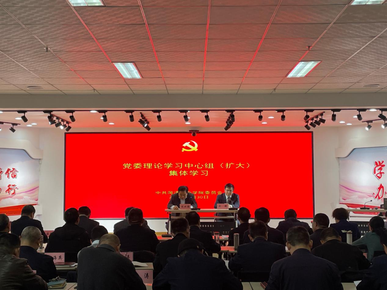 党委书记陈北国作主旨讲话,他指出《党委会的工作方法》仍然是指导我们党工作的重要“法宝”,学院领导班子成员要率先垂范,一是要严格遵守政治纪律和政治规矩,把对党忠诚的要求体现到学院发展的工作实践和自身言行上;二是要模范贯彻民主集中制;三是要切实改进领导作风,求真务实。领导班子成员要把学习内容与建设鲁苏豫皖交界地区高水平高等职业院校结合起来,切实把学习成效转化为推动学院高质量发展和助推菏泽“后来居上”的实际行动,为服务菏泽经济社会发展作出更大贡献。