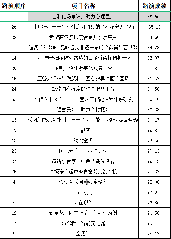 附:校赛项目路演成绩排名