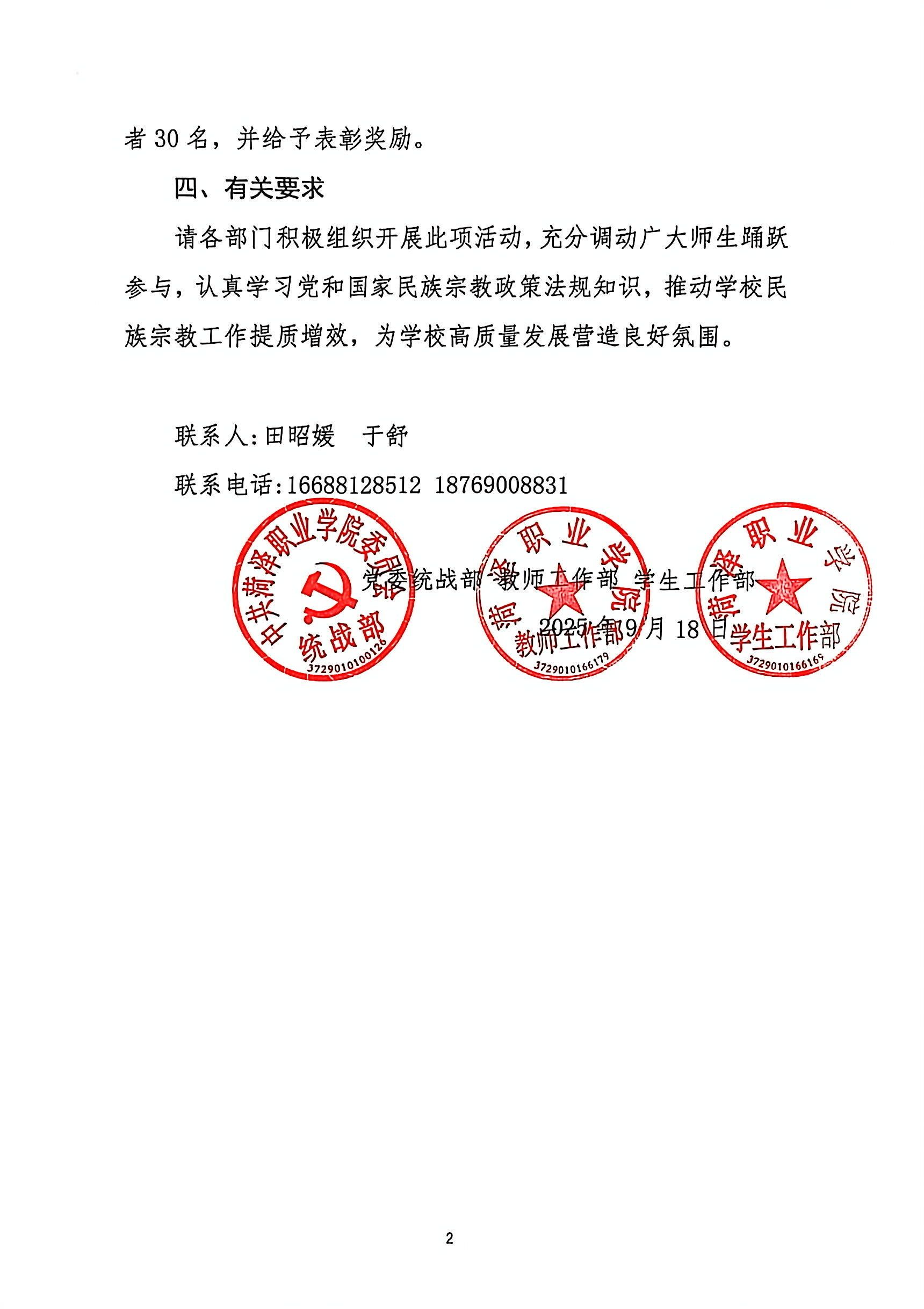 为加深对国家民族宗教理论政策的了解,提升抵御宗教渗透能力,筑牢中华民族共同体意识,万象城官网党委统战部、教师工作部、学生工作部联合开展此次网络知识竞赛活动,诚邀全体教职工与学生参加!