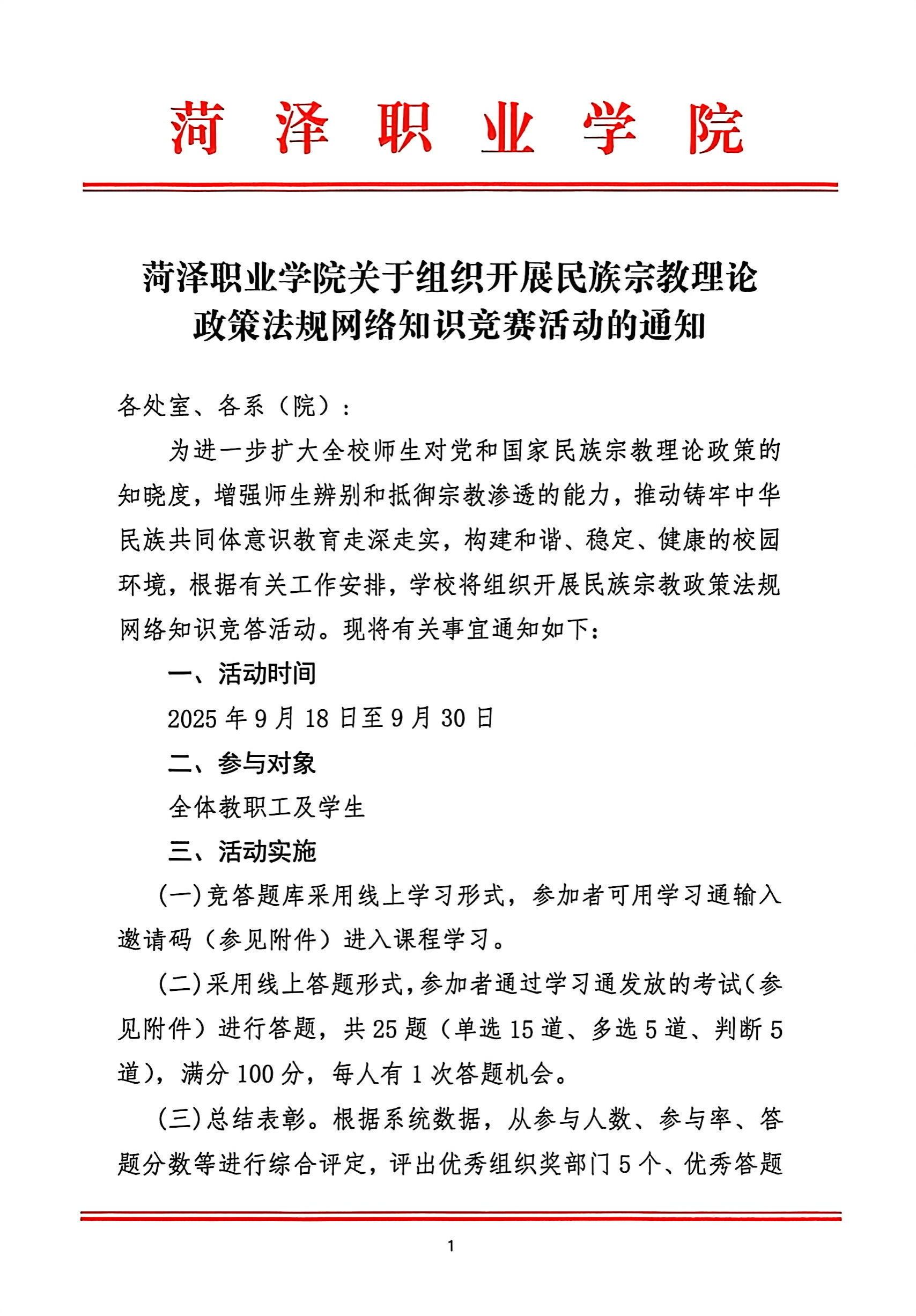 @菏职全体师生!民族宗教理论政策法规网络知识竞赛邀您参与