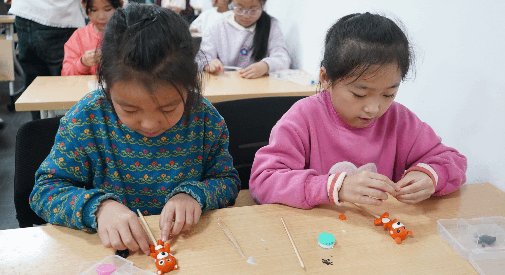 在非遗课堂,孩子们体验了精雕细琢的刻瓷、栩栩如生的面塑、精彩绝伦的剪纸课程,沉浸式领略了非遗文化之美。