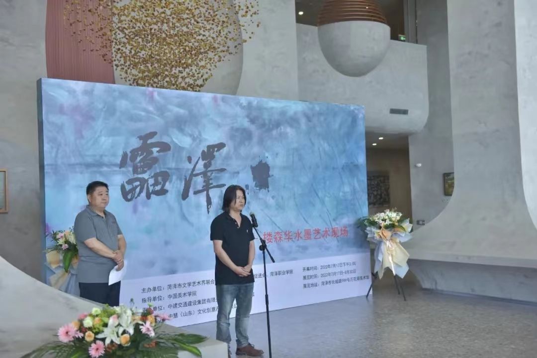 开幕式上,市人大常务委员会主任王磊发表了热情洋溢的讲话。他说,我们今天雅聚万花湖美术馆,参加“雷泽”楼森华水墨艺术现场活动开幕式,这是我市文化艺术交流的一个重要活动,是推进我市文化事业繁荣的重要措施,也是展现菏泽厚重历史文化底蕴、提升菏泽形象和影响力的重要载体。值此酷暑季节,楼森华先生应邀来菏,连续进行了十几天的艺术采风和文化调研,对菏泽深厚的文化底蕴作了深入挖掘,产生了丰富的创作灵感,文思泉涌,泼墨挥毫,以独特的视角和深刻的理解,用水墨艺术将菏泽历史文化凝聚笔端,在短短几天里,创作出50余幅构思奇妙、尺幅巨大、笔墨生动、美仑美奂的书画作品。如果没有深厚的文化功底,没有坚实的日常积累,没有精湛的艺术功力,没有对菏泽文化的深入调研和热爱,是无法理解和难以想像的。对此,我们向楼森华先生表示由衷敬意和诚挚的谢意,也衷心期待更多的艺术家,像楼先生一样,走进菏泽、了解菏泽、写菏泽,画菏泽,宣传菏泽,为菏泽的历史文化创新传承,为菏泽的经济社会高质量发展,为菏泽突破发展、后来居上,共同合作,携手奋进。