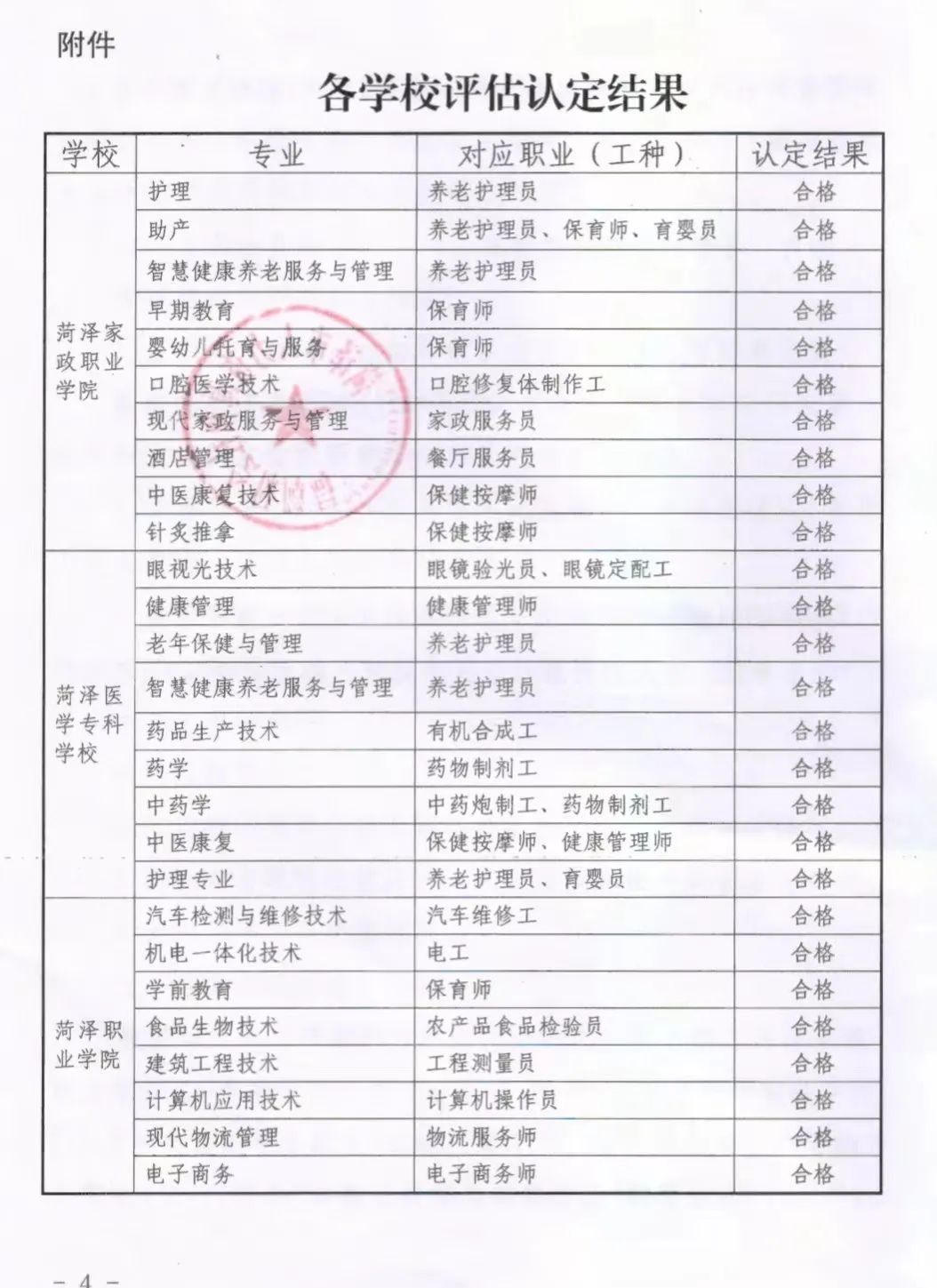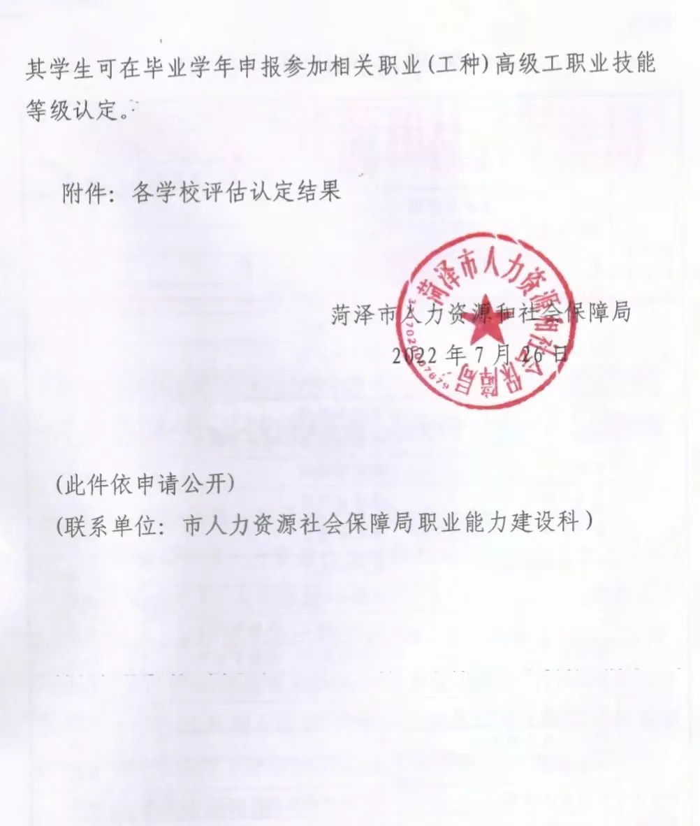 近日菏泽市人力资源和社会保障局发布了《关于公布菏泽家政职业学院等三所高职院校部分专业开展技能培养层次评估结果的通知》详细内容如下: