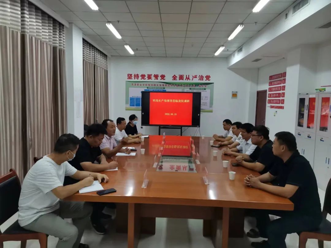 为推进校园万花湖生态建设,8月25日上午,菏泽市牡丹区畜牧水产局李永生副局长带领水产服务中心同志一行到我院进行共建调研,党委委员、副院长胡宪奎,后勤管理处负责人殷付仁、宣传统战部负责人周世竞等陪同调研。