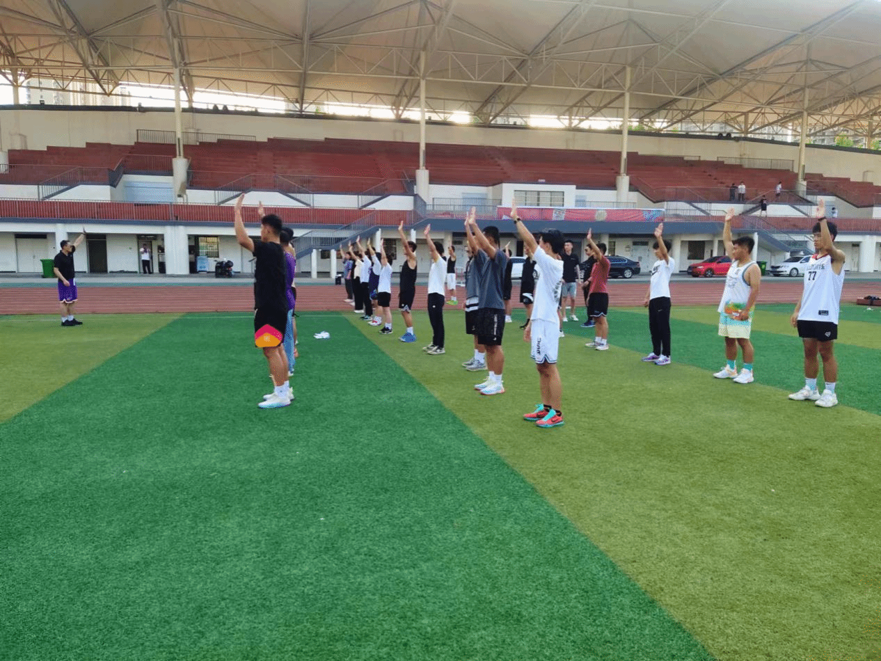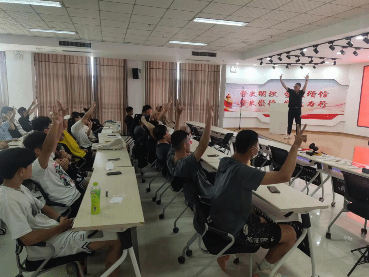 刘骥腾老师亲自带领学员们进行莱格体能测试,并上场辅导学员熟悉、掌握比赛中三人执裁实操、让学员三人一组实习。