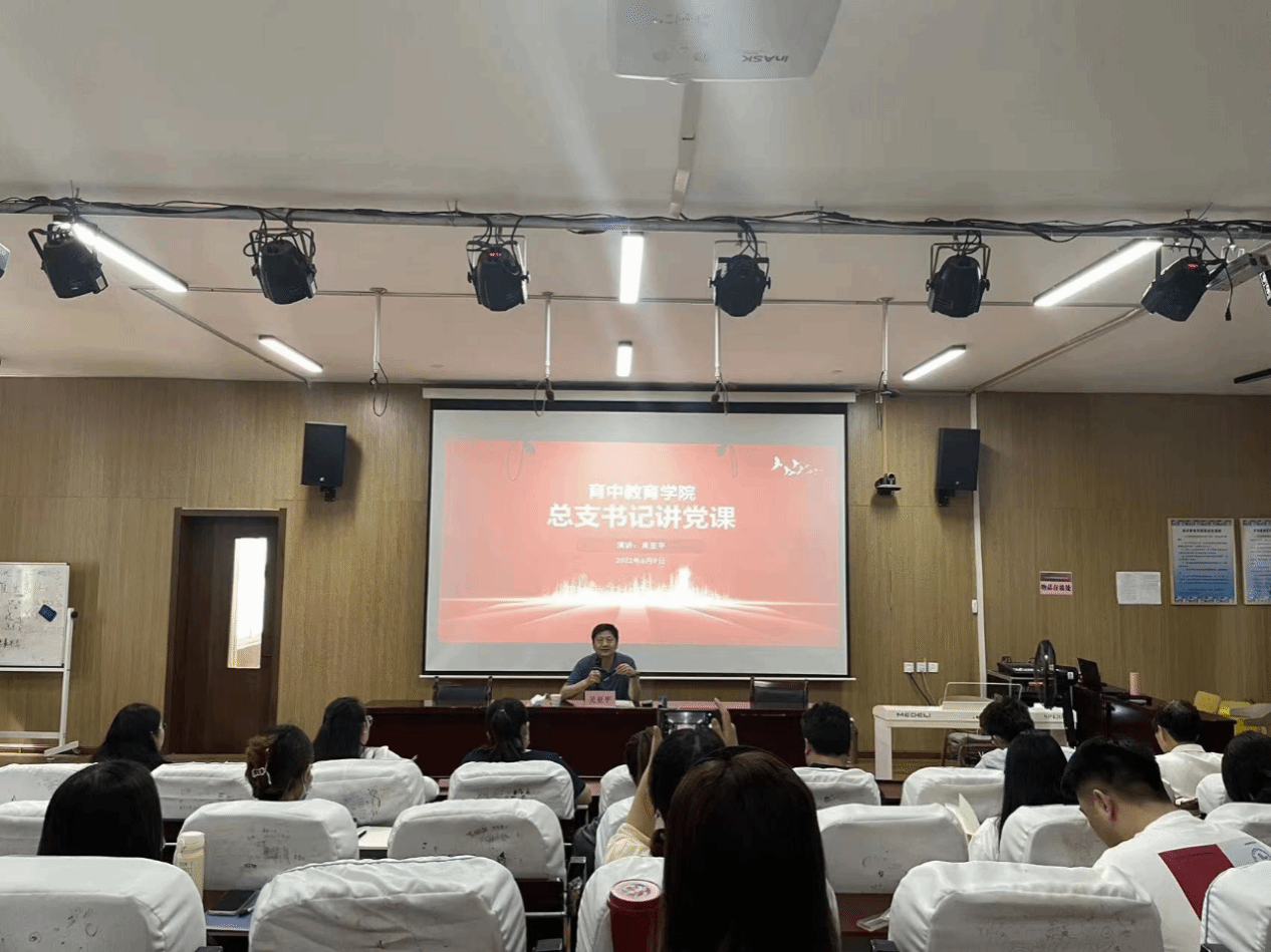 根据学校工作安排,为扎实推进党史学习教育常态化、长效化,进一步加强我院广大师生的党性教育,激励党员立足岗位、接续奋斗、实干担当。6月9日上午,awc777万象城娱乐官网党委副书记吴亚平来到育中教育学院,在5—2阶梯教室,举办以“总支书记讲党课”为主题的讲党课活动。育中教育学院党总支副书记徐冉、执行院长姚月芝等领导、全体党员、教师及学生代表共40余人参加了此次活动。