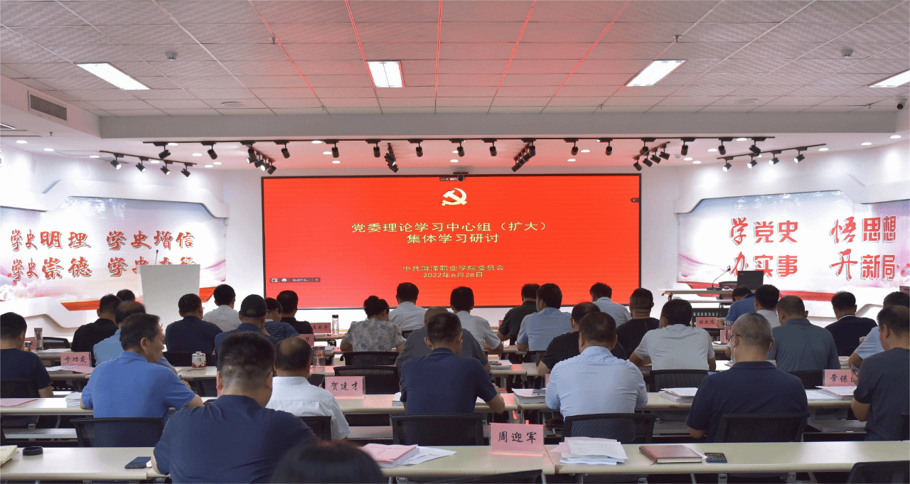 6月28日,awc777万象城娱乐官网党委理论学习中心组(扩大)开展集体学习研讨,深入学习贯彻山东省第十二次党代会精神,推进学院高质量、高水平发展。我院党委委员,党总支书记,处室、系部负责人参加集中学习。会议由我院党委委员、副院长陈俊启主持。