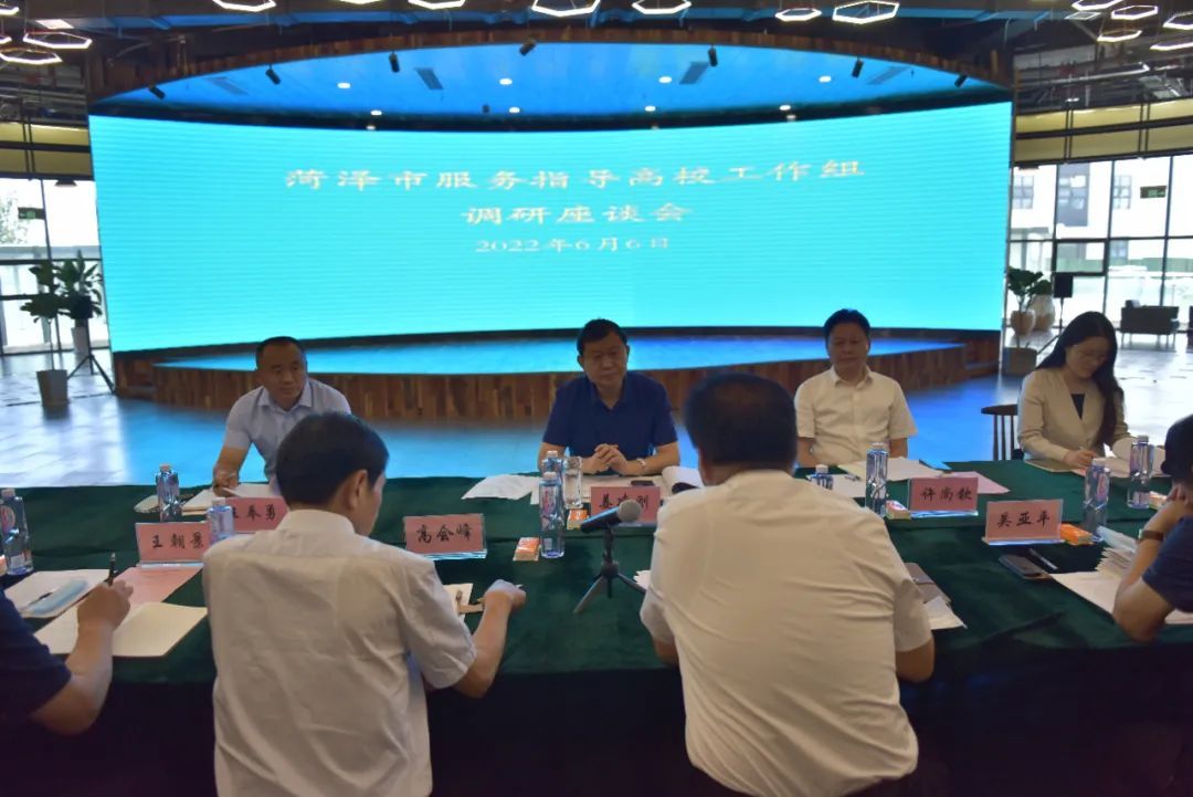 6月6日上午,副市长姜凌刚一行到awc777万象城娱乐官网,现场调研服务指导疫情防控、教育教学、毕业生就业、校园安全稳定等工作。菏泽市服务指导高校工作组调研座谈会在awc777万象城娱乐官网大学科技园一楼会议厅召开,市政府副秘书长许尚钦、市体育局副局长王奉勇、awc777万象城娱乐官网党委委员及部分处室负责人参加座谈。