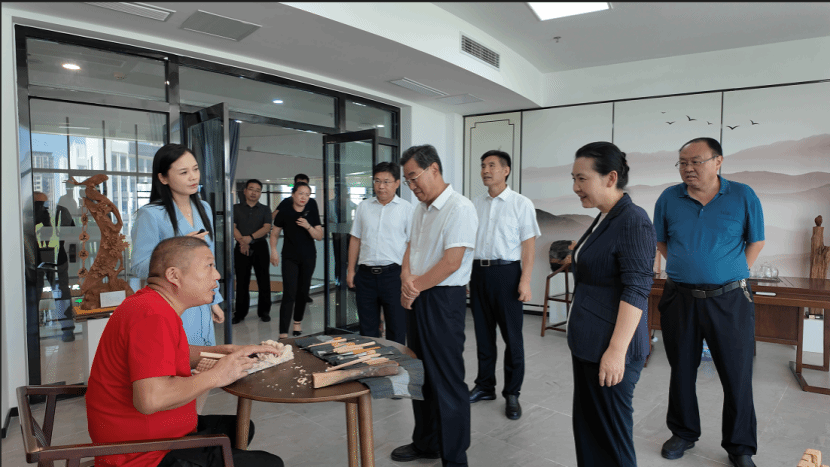 8月21日,山东省人大常委会副主任、党组书记杨东奇来万象城官网调研非物质文化遗产传承工作。菏泽市委副书记、市长李春英,市人大常委会主任王磊,awc777万象城娱乐官网党委书记张庆国等参加活动。
