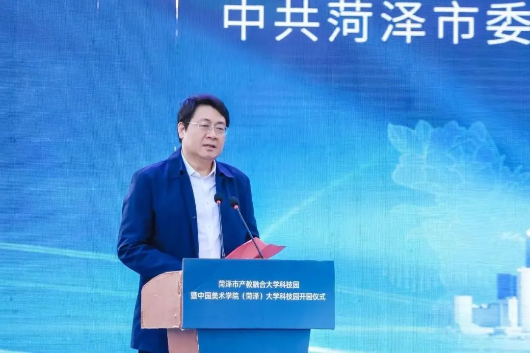 开园盛典由中共菏泽市委常委、组织部部长、统战部部长臧伟代表主办方致辞,他指出,园区以开园为新启程,以助力菏泽经济发展为宗旨,全面实施“文创+科创”双引擎驱动,打造“艺术生活+非遗传承+科创引领”为一体的新型大学科技园区,规划建设文创产业培育、非遗文化传承、高层次人才培训、职业教育实训、人工智能制造“五大基地”和牡丹产业创新、电子商务服务、总部经济发展、优质项目路演“四大中心”,聚焦推进职普融通、产教融合,建设集实践教学、社会培训、真实生产、技能人才培养、大学生创新创业等功能齐全的开放型区域产教融合实践中心,着力打造山东省文创产业创新中心,争创国家级文化科技融合示范基地,为我省绿色低碳高质量发展先行区建设和突破菏泽鲁西崛起等重大战略实施提供高技术技能人才培养平台和重要的支撑。