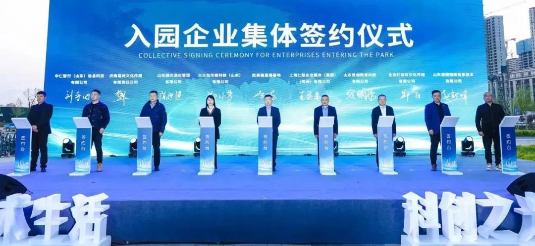 现场还举行20多家入园企业代表集体签约仪式,目前园区已经入驻包括人工智能、电商直播、数字政务、生物科技、智慧校园、文化创意、智慧交通等企业五十多家,园区初步形成了产教融合发展新生态。