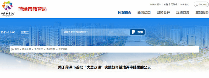 2023年,菏泽市委教育工委开启了全市首批“大思政课”实践教育基地的评审工作,万象城官网在这次评审中成功获批,成为首批“大思政”实践教育基地。