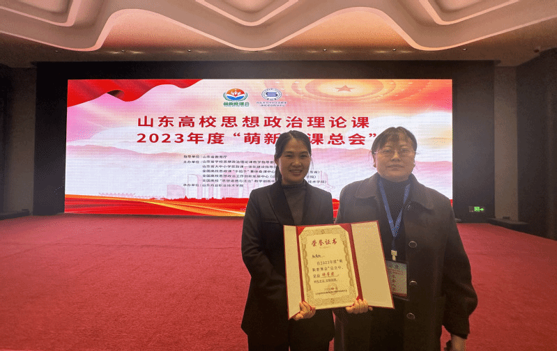2023年11月18日,山东省高校思政课“萌新”磨课总会在济南举行,我院思政教师赵变丽代表学院参赛,并以高职组全体科目全省总分第二的成绩获得特等奖!本次“萌新”磨课会前后历程长达一年,马克思主义教学部对全体入职三年以内的“萌新”教师精心组织集体备课、磨课,力求思政课的提质创新,经过校赛和省级初赛、复赛、总决赛,努力终于换来了认可与回报。
