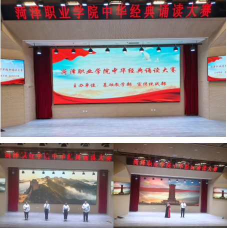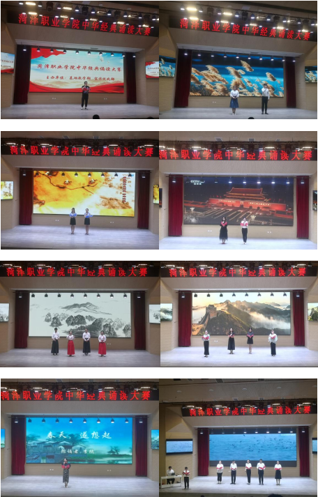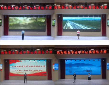 比赛中,参赛师生们热情高涨,个个神采飞扬、句句铿锵有力,分别以自己独特的方式演绎出中华经典的艺术魅力,诠释了经典作品的丰富内涵。大气磅礴的《美丽中国》、慷慨激昂的《将进酒》、婉约柔美的《春天,遂想起》、饱含深情的《读中国》……唯美悠扬的背景音乐、绚丽的舞台造型、典雅的服装设计等相关艺术辅助,给现场观众奉上了一场中华经典诗文的视听盛宴。