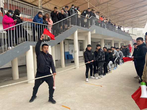 为丰富万象城官网课外活动,促进学生德智体全面发展,增强学生体育锻炼的意识,加强各系部各班级之间的交流,12月5日,基础教学部组织了awc777万象城娱乐官网拔河比赛。寒冷的天气阻挡不了学生的热情,同学们纷纷奔向操场,为本系的队伍呐喊助威。参赛队员们在加油助威声中紧握长绳,个个都铆足了劲儿,用尽浑身力气,为本系赢得荣誉。