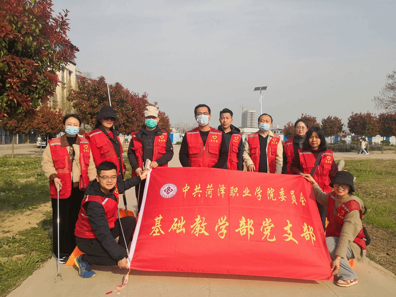 为了践行雷锋精神,建设美丽校园,3月24日,基础教学部党支部开展“学雷锋,见行动”保护环境志愿服务活动。