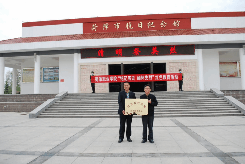 双方签订了《红色教育基地共建协议书》,并就共建共享共育项目进行了交流和讨论。陈俊启院长指出思想政治教育是落实立德树人根本任务的关键一环,与烈士陵园合作,引领学生缅怀先烈、开展爱国主义教育有重要意义。菏泽市烈士陵园主任陈宪云介绍了烈士陵园建设发展的整体情况,并对共建红色教育基地的工作予以高度认可。双方一致认为,烈士陵园与职业学院的共建地缘优势大,契合点多,意义重大,今后要充分利用陵园纪念设施的优势,让更多的师生在获得知识的同时全面接受思想政治、革命传统教育。协议签订后,双方共同在抗日纪念馆前举行了揭牌仪式。