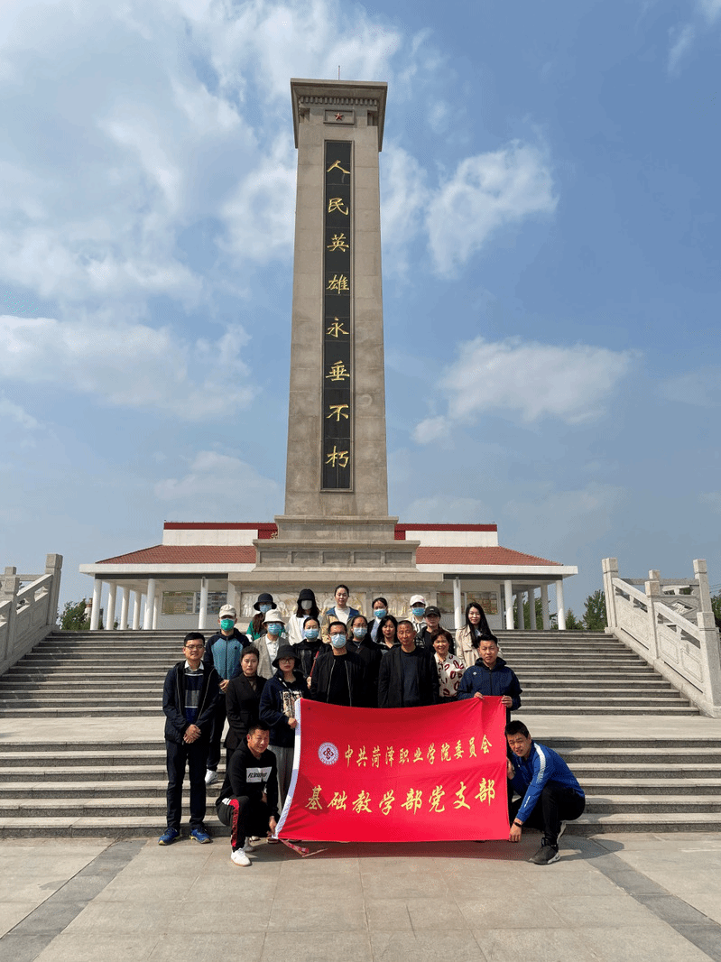 为了传承革命精神,弘扬革命美德,4月14日下午,基础教学部党总支党员及思政教师集体参观菏泽市烈士陵园,开展主题党日活动,传承红色基因,缅怀革命先烈。
