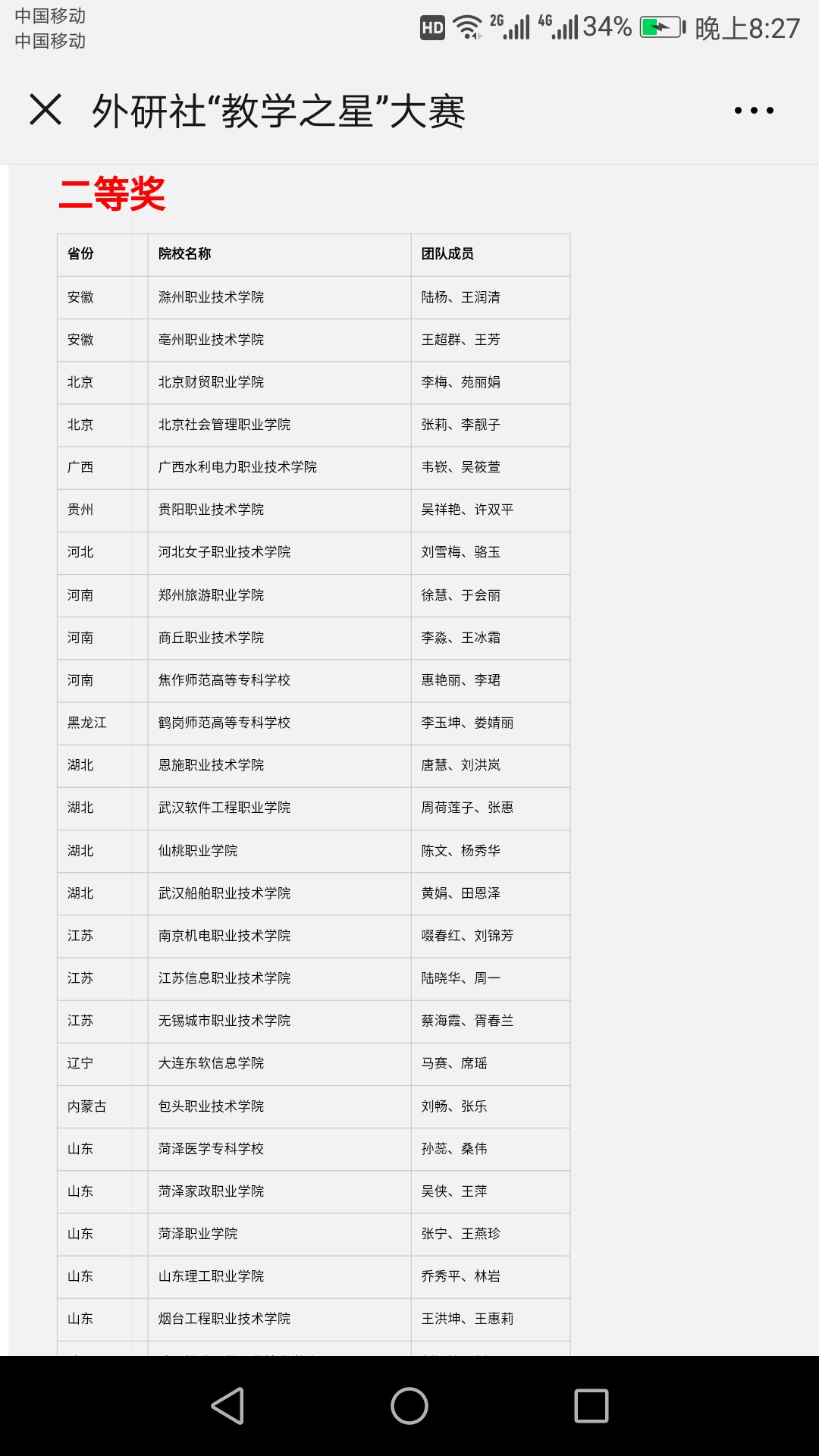 2019年外研社“教学之星”大赛赛题为“成效导向的教学设计:从金课程到金课堂”,大赛本科英语组分为大学英语组和英语专业组两个组别。参赛材料包括“教学设计方案”,占总评分的70%,和40-50分钟的“授课录像”,占总评分的30%。今年大赛要求教师以团队形式参赛。自4月份比赛章程颁发以来,英语组立即组成了张宁、王燕珍参与的教学团队,并推荐张宁老师担任课程主讲。经过两位教师的多次探讨、组织听课、提出修改方案并不断完善后,我院英语组的“Asking For Personal Information”(询问个人信息)课程最后获得2019年外研社“教学之星”大赛(高职组)全国半决赛二等奖。