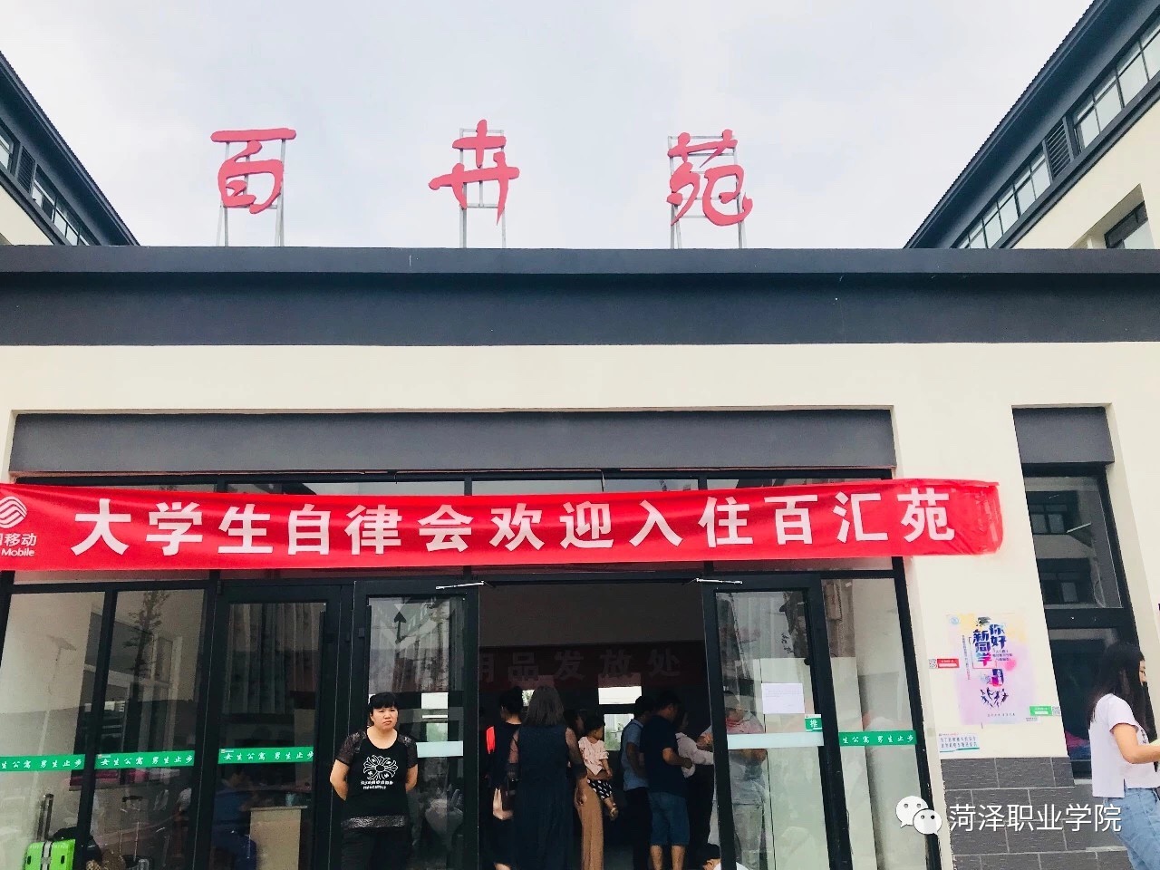 在餐厅北门基础部老师带领学生会同学负责新生床上用品的发放(新生需凭购买床上用品收据领取)。
