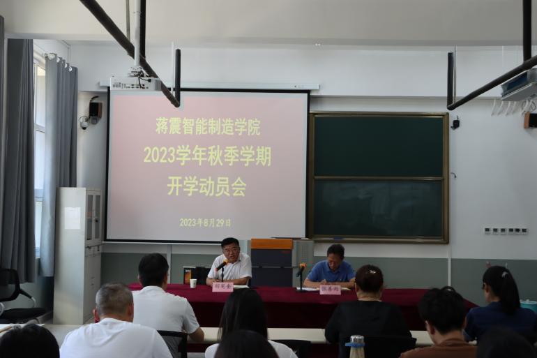8月29日下午,学院党委副书记胡宪奎到蒋震智能制造学院开展调研活动,出席2023年秋季学期开学动员会议做动员讲话,蒋震智能制造学院全体教师参加了会议。会议由蒋震智能制造学院党总支书记张善雨主持。
