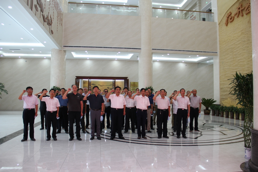 “我志愿加入中国共产党,拥护党的纲领,遵守党的章程,履行党员义务……”最后,在鲜红的党旗下,全体党员干部面对党旗庄严宣誓,重温了入党誓词。