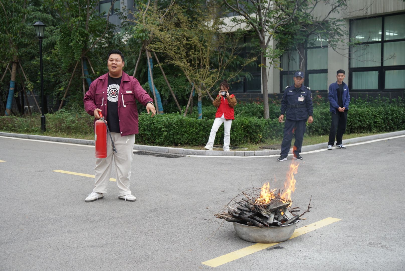 演练开始后,师生们按照预设的逃生路线,用湿毛巾捂住口鼻,弯腰低姿快速有序撤离至安全区。随后,安保处宁曜老师现场演示了灭火器的使用方法,学生们踊跃实操,熟练掌握灭火技能。