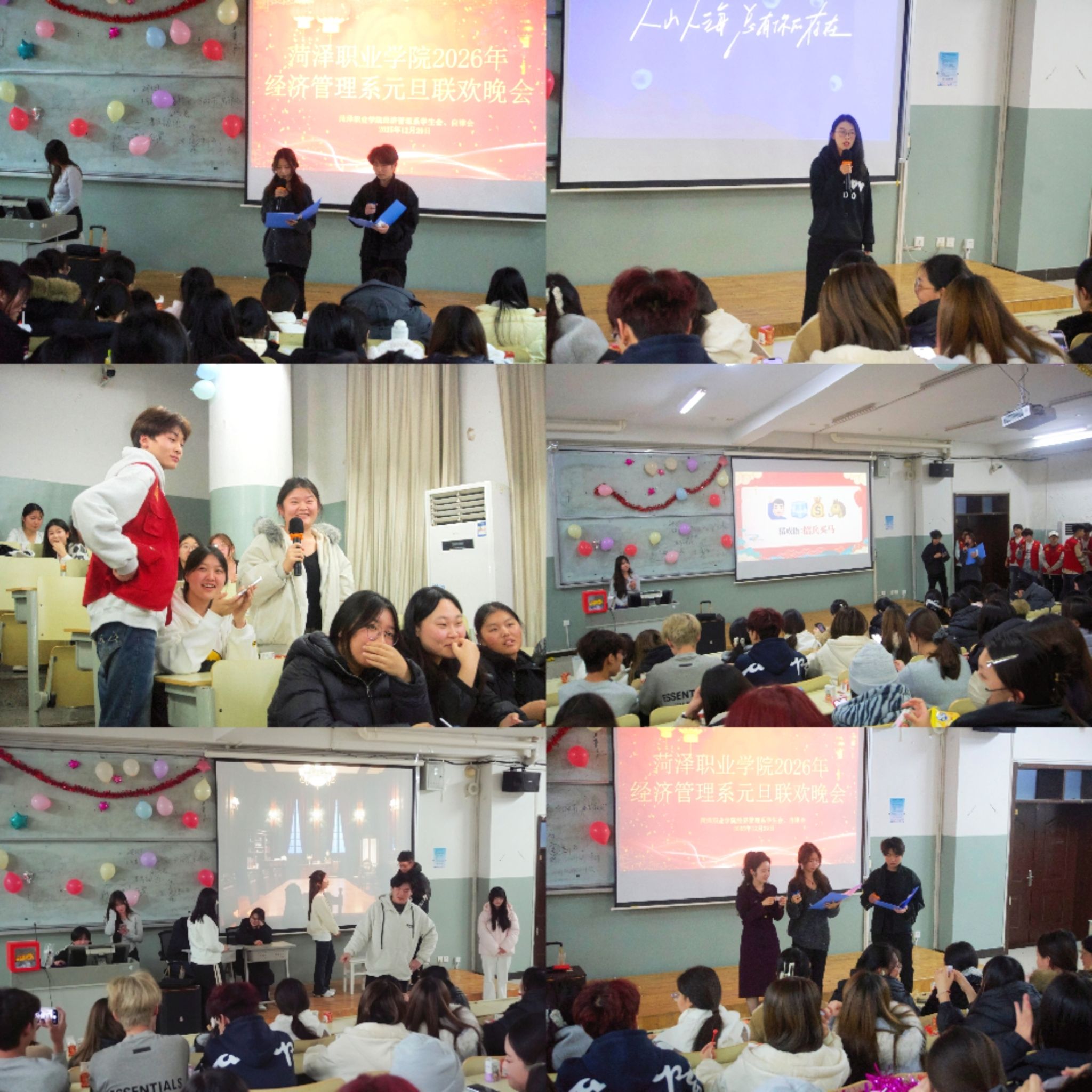 岁序常易,华章日新。12月29日晚,经济管理系元旦联欢晚会于8300教室温暖启幕。本场晚会由系部精心组织,以丰富节目与互动环节为载体,现场师生齐聚一堂,共享欢乐喜庆的节日时光。