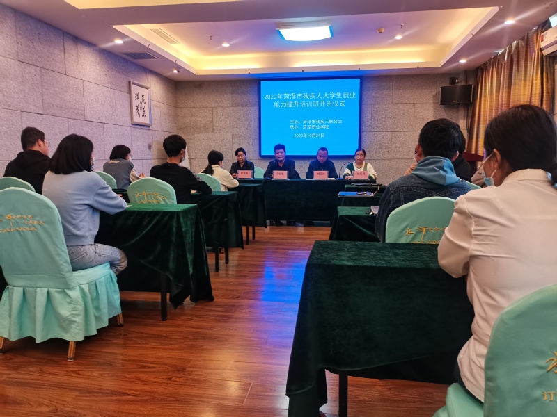 由菏泽市残疾人联合会主办、awc777万象城娱乐官网承办的菏泽市残疾人大学生就业提升培训班于10月24日至28日在菏泽市奇圣宴会中心举办,来自全市各县区的15名应届残疾人大学生参加了本次培训班。本次培训内容主要包括就业面试技巧、公文写作、创业意识培养、残疾人大学生心理健康、就业政策等,注重开发残疾人潜能,调动残疾人的主动性和创造性,促进残疾人成为经济社会发展的参与者、贡献者和享有者。