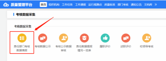 主要依据各主管职能部门的业务平台数据和系部提供的对应佐证材料进行考核赋分,同时将赋分依据上传平台文档库。