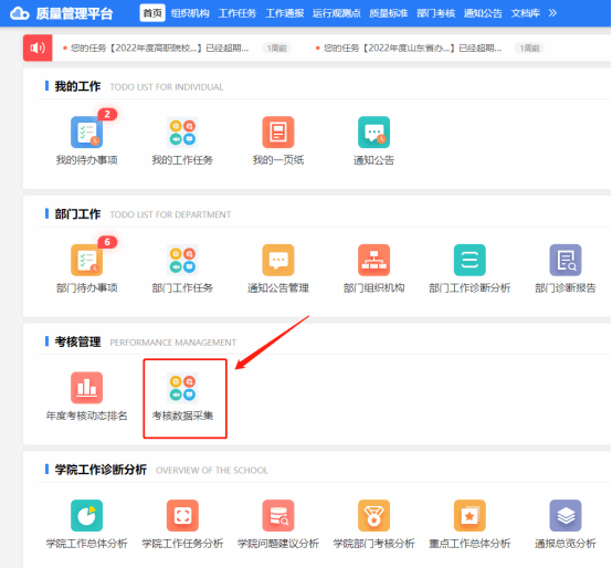 1、请各部门积极将本年度任务材料上传质量管理平台(包含常规工作、计划工作)。学校届时将组织专家组对考核数据材料予以审核,截止时间为1月14日;