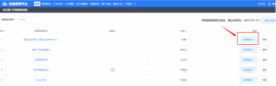 3、质量管理平台的考核数据采集工作已启动,请数据采集部门(附件1)按照采集填报步骤(附件2)设置填报人,进行赋分填报,并将各项指标的赋分方案或依据以及考核结果上传至文档库—年度考核文档相应文件夹中,予以公示(注:各项指标分数需存在差异),截止时间为1月14日;