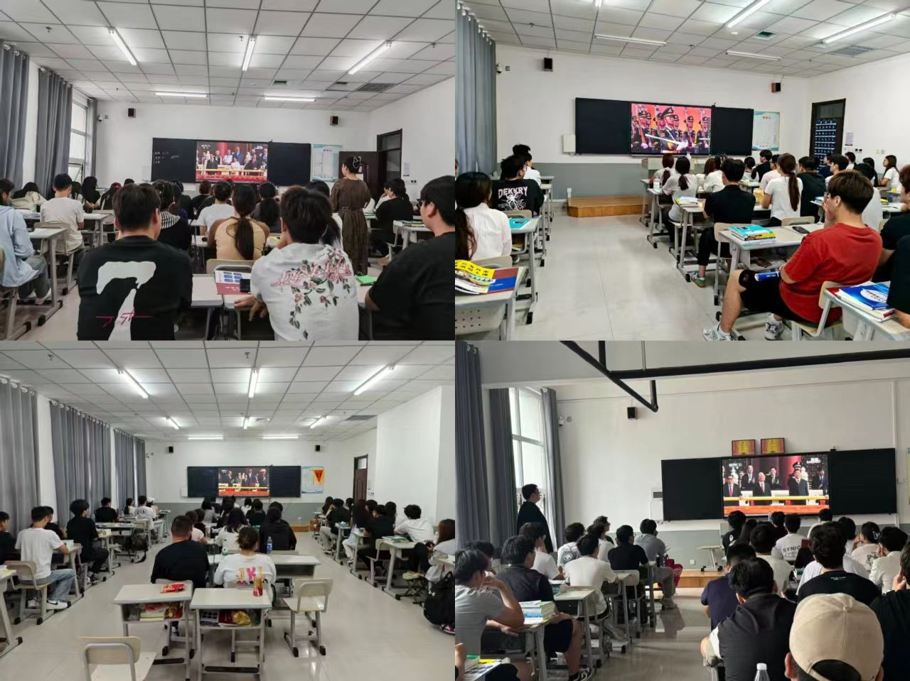 9月3日,建筑工程系组织全体师生在各教室集中观看 “纪念中国人民抗日战争暨世界反法西斯战争胜利 80 周年” 阅兵式,共同接受历史教育与精神洗礼。