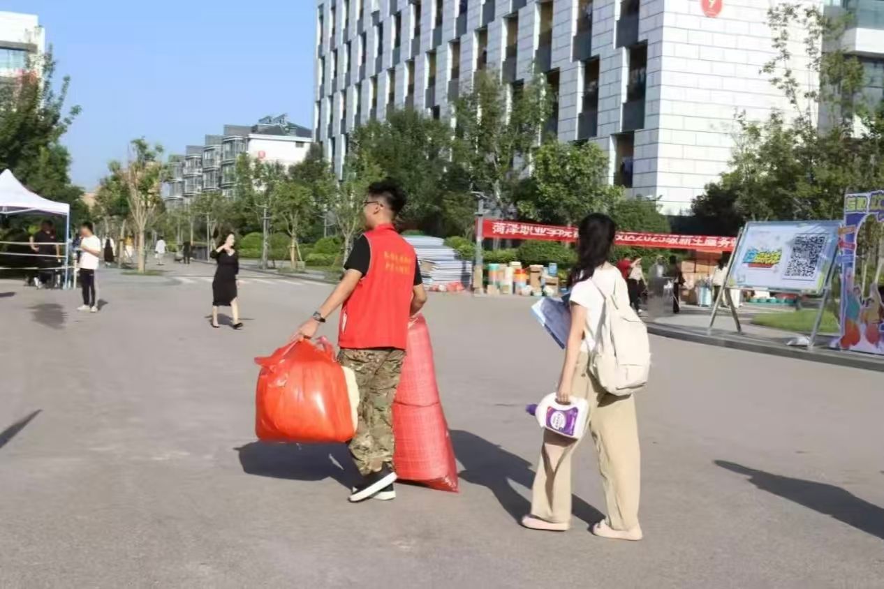 迎新当天,从校门口的引导接待,到报到点的手续办理,再到宿舍楼下的行李搬运,志愿者们全程 “一对一” 陪伴新生。“同学,这边请,先核对身份证和录取通知书”“行李我来帮你拿,宿舍在三楼,咱们慢慢走”“这是你的校园卡和宿舍钥匙,有任何问题随时找我”—— 一句句贴心的话语、一次次主动的帮扶,让新生们在陌生的环境中感受到家人般的温暖。