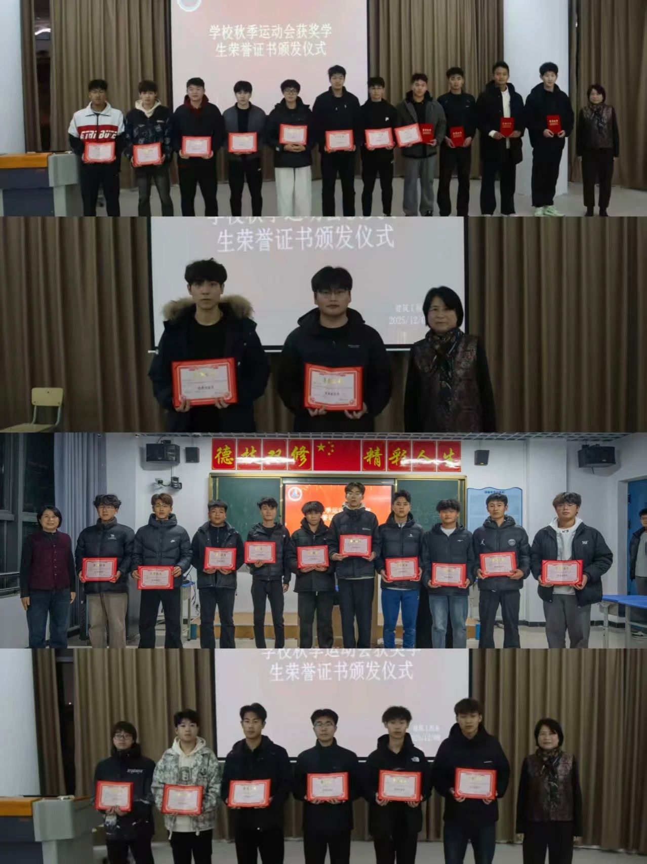 为了表彰在运动会中奋勇拼搏、屡创佳绩的运动健儿,弘扬“更高、更快、更强、更团结”的体育精神。建筑工程系于12月10日在校本部与雷泽湖校区分别举行优秀运动员颁奖仪式。