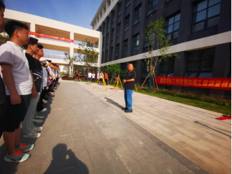 上午8点30分,建筑与化工学院周迎军书记为参加比赛的队伍鼓舞打气,并宣布比赛正式开始。