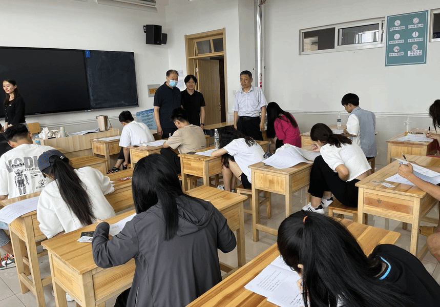 旅游管理系2022年6月23日上午开始进行期末考试,王院长、孙处长、周书记亲自巡场。