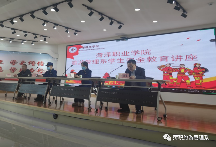 火灾防患于未然,消防安全重于泰山。为进一步加强校园消防安全工作,切实提高广大师生的消防安全意识,提高师生防灾及突发事件应急处理能力,体现“预防为主,防消结合”的消防方针,有效地预防和处置突发性火险事故,保障师生人身安全,旅游管理系于2023年3月14日下午,联合保卫工作部成功举行了“消防知识培训和消防疏散演练”活动。活动特邀菏泽市消防救援支队宣传科孟令霞、何鑫老师进行消防安全知识培训,保卫工作部副主任纪元、旅游管理系副书记李海东出席。