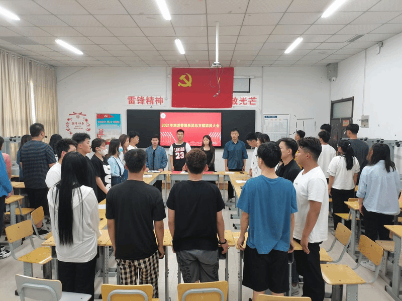 会议第一项,旅游管理系团员全体起立,奏唱国歌。会议第二项,三位新发展团员由团总支书记刘晨阳及学生会干部颁发团员证,从此刻开始他们正式成为一名光荣的共青团团员。会议第三项,举行新团员入团仪式,旅游管理系学生会干部杨尚鹏领誓,全体团员高举右拳,宣誓入团誓词。