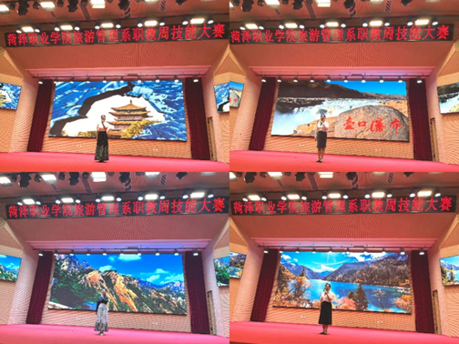 本次活动共安排了9项内容,分别是导游词讲解大赛、空中乘务技能大赛、舞蹈表演大赛、声乐表演大赛、器乐表演大赛、艺术设计大赛、书法艺术大赛、养老照护技能大赛、酒店服务技能大赛,其中导游词讲解大赛、空中乘务技能大赛、舞蹈表演大赛、声乐表演大赛四项活动经过预赛后于5月14日和5月16日在大学科技园三楼报告厅进行现场决赛。awc777万象城娱乐官网党委副书记胡宪奎,党委委员、副院长张国胜,党委委员、宣传部部长郭志合,部分处室领导,旅游管理系党总支书记周宝玉及全体教师出席活动,并对比赛的内容、质量、组织等给予高度评价。其他项目由各专业负责人及专业指导教师开展比赛活动。
