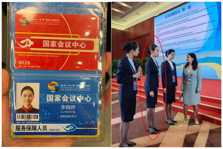 第三届“一带一路”国际合作高峰论坛于10月17日至18日在北京举行,本次高峰论坛有151个国家和41个国际组织的代表来华参会。会议开幕前旅游管理系李婉婷、王雅琪两位学生通过层层选拔和审核,作为北京国家会议中心会议服务保障人员进入国宾服务队,在主会场为各个国家及国际组织领导人服务。