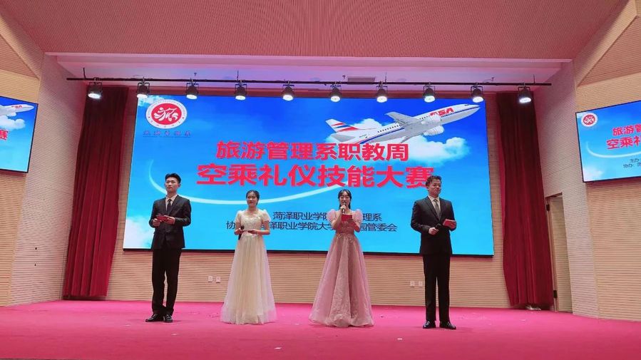 本次大赛设置两个赛项:导游词讲解技能大赛和空乘礼仪技能大赛,这两项比赛经过预赛后分别确定8名和10名选手进入决赛。