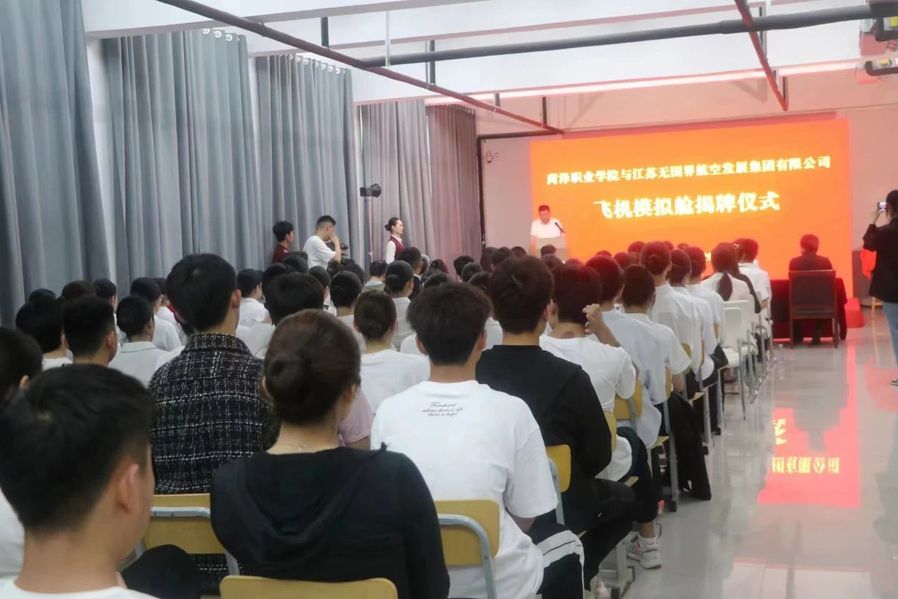 飞机模拟舱揭牌仪式中,胡宪奎首先致辞,他从学院的发展历程、校企合作情况及旅游管理系与江苏无国界航空发展有限公司订单式培养合作取得的成绩等方面作了介绍,对双方合作给予肯定,并对以后的合作提出了新的要求。