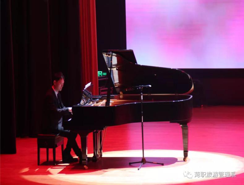 旅游管理系教师高鑫的钢琴独奏《太阳最红,毛主席最亲》,钢琴的旋律萦绕在耳边,仿佛回到了那段红色的岁月。感受到了指点江山激荡文字的风度,犹如东方的红日给予温暖与亲切。