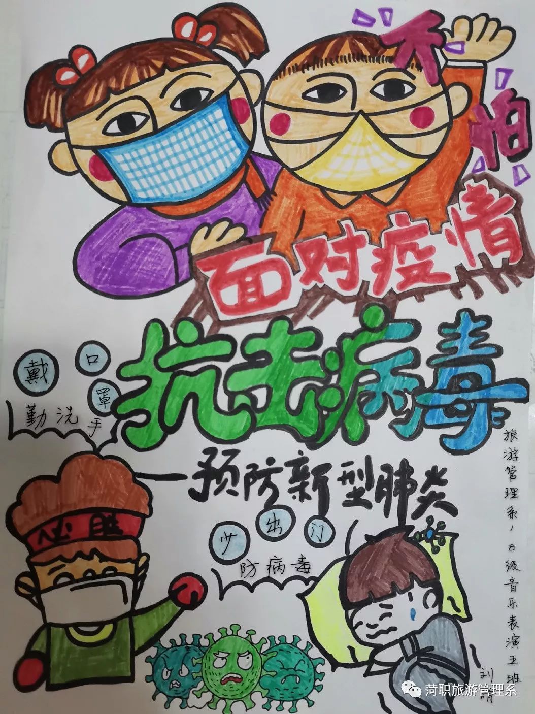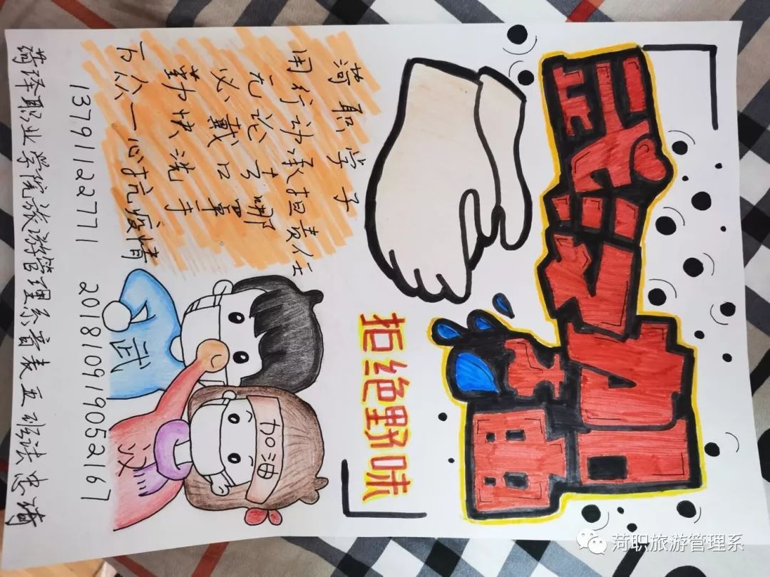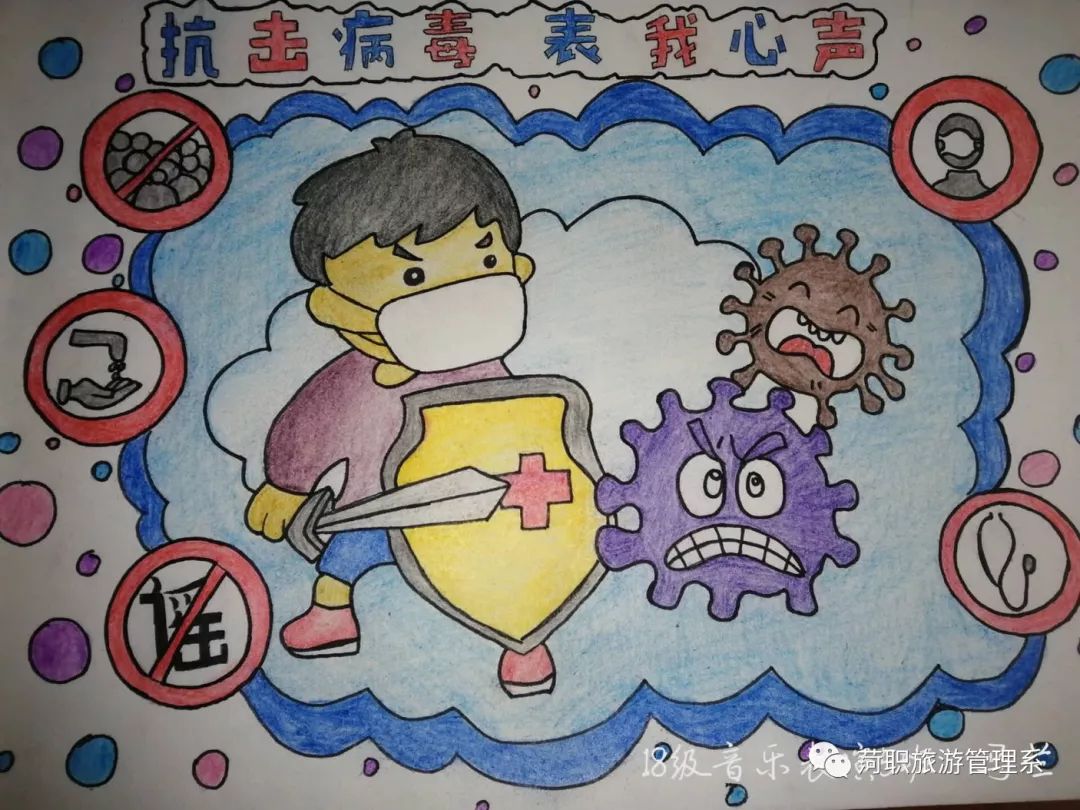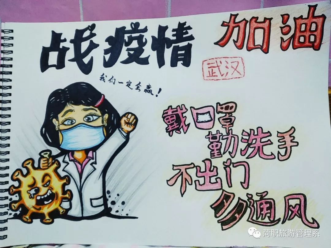 学生的宣传作品发布使全体师生更加坚定了防控疫情的决心 ,万众一心托起驱散阴霾的冬日暖阳。