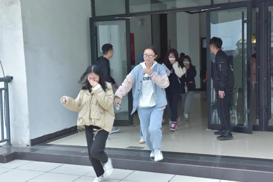 演练开始前,学生会干部到达各班给学生强调疏散演练时的相关事项,并详细讲述了逃生路线。按照演练要求,楼梯及教学楼拐角处由值班老师来维持疏导秩序,保障疏散路线的畅通,保护学生安全下楼到达指定位置。演练开始,大家低头、捂住口鼻,按照消防疏散路线,向教学楼下疏散,整个过程有条不紊,前后仅用两分多钟。