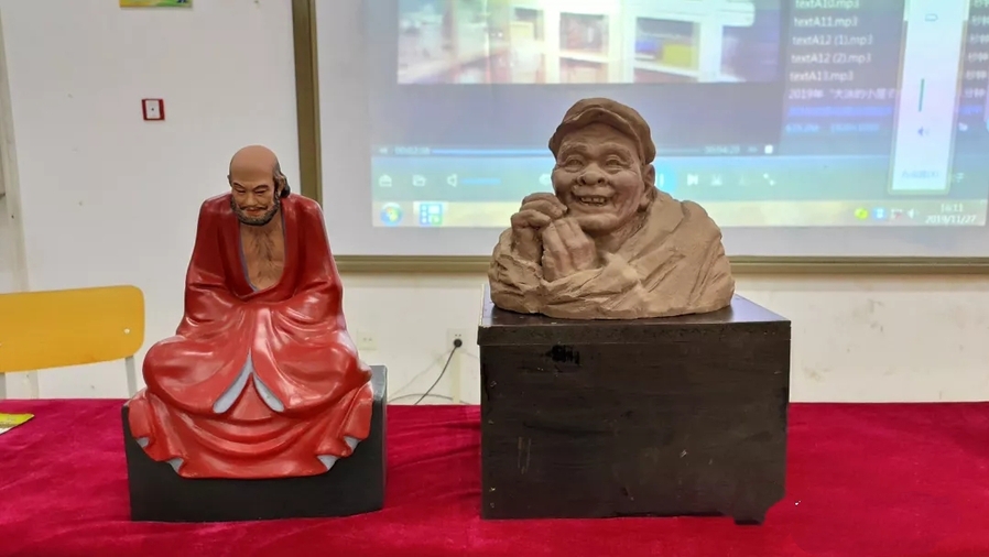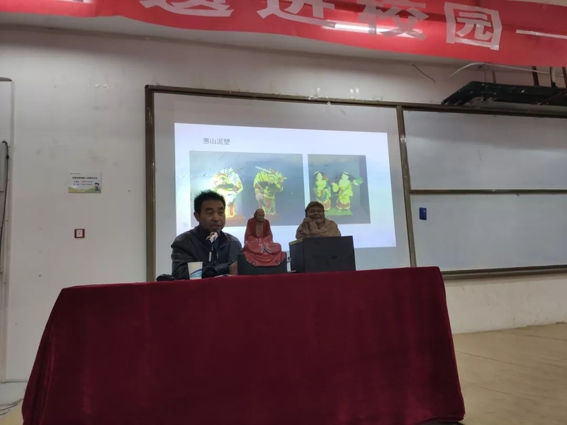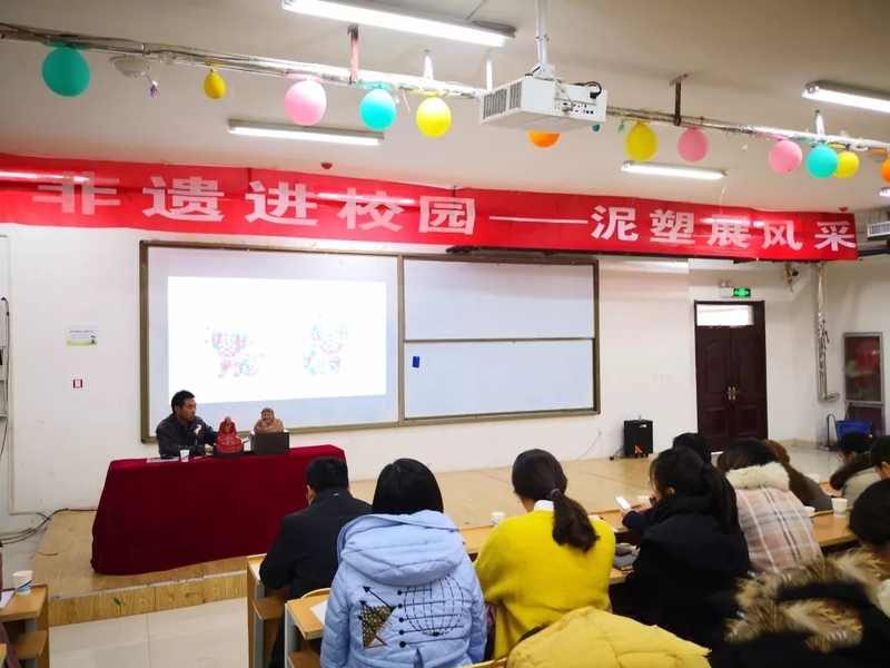 菏泽国韵非物质文化遗产研究院偕旅游管理系,邀请非遗菏泽泥塑代表传承人赵东民老师于11月27日下午2.30在十号一楼为师生开展了一场“非遗进校园——泥塑展风采”的精彩讲座。