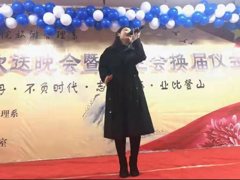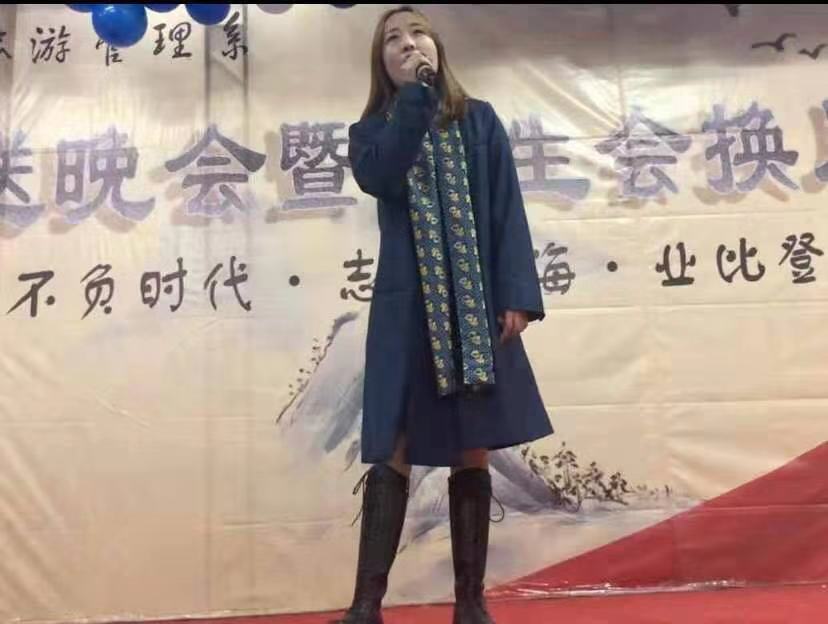 17级的金萍同学演唱了自己刚来学校时参加活动的第一首歌曲《我从草原来》表达了两年半来对学校的不舍之情。