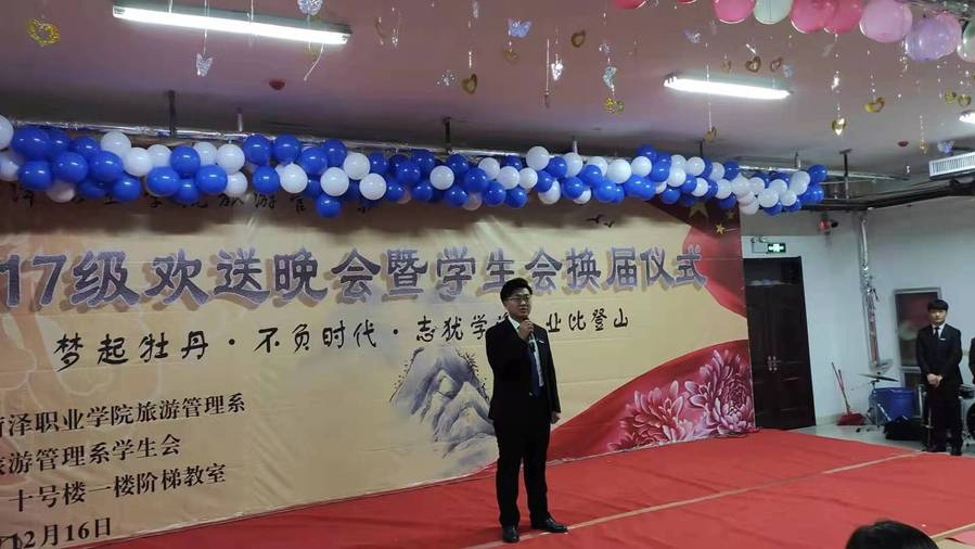 回顾校园的美好时光,17级同学转眼就要离开校园走向实习岗位完成他们新的学习任务。随着跳跃的音符和动感的舞姿17级欢送晚会暨学生会换届仪式在十号楼一楼阶梯教室正式拉开序幕。参加本次晚会的有宋书记、各班班主任、17级全体同学以及18、19级学生代表。