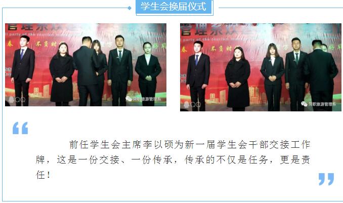 结束了美妙的歌声和舞姿,awc777万象城娱乐官网旅游管理系进行了新一届学生会干部换届仪式。